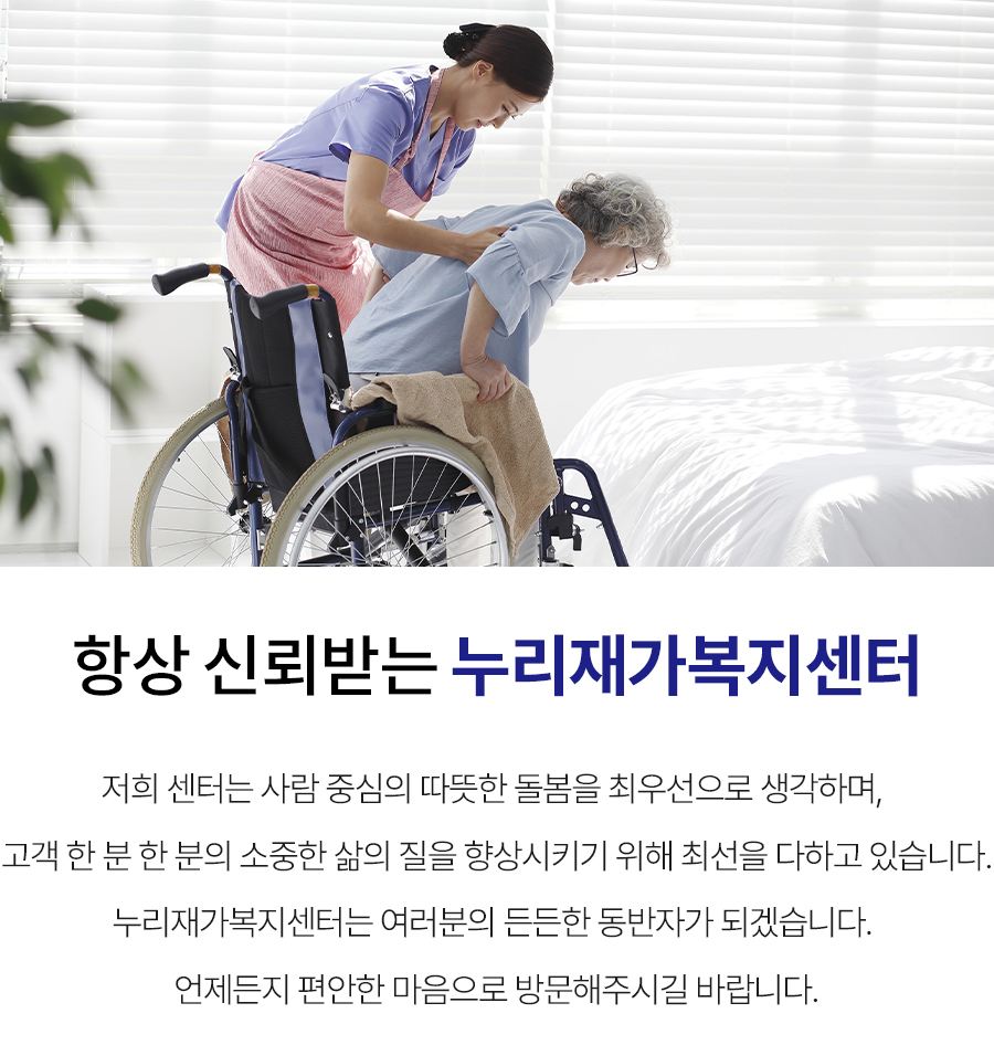 누리재가복지센터 홈페이지를 방문해주셔서 진심으로 감사드립니다.